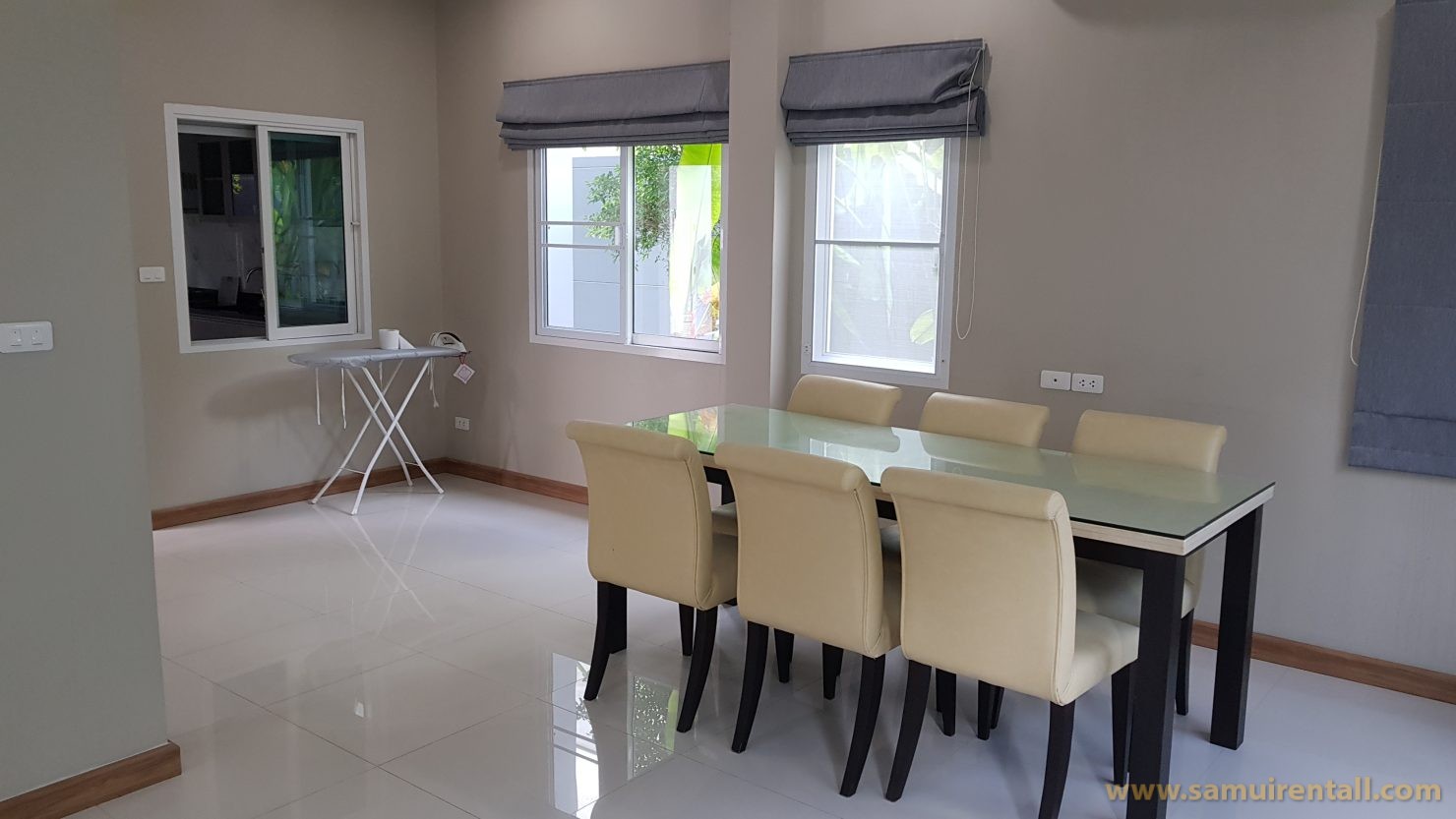 2 storey house has 3 big bedrooms with 3 bathrooms on the top floor. On the bottom floor you have a spacious living room, dining area and a wester style kitchen equipped with an oven, microwave, big fridge and gas stove. Comes with a washing machine too. Fully equipped ready for your family to move in.